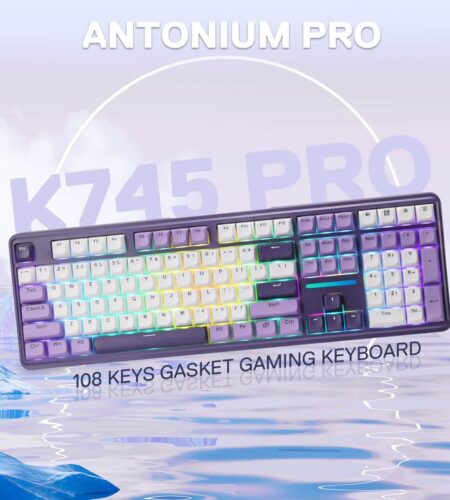 The Redragon Antonium K745 Pro represents a significant step up for the budget peripheral manufacturer, moving away from the “pingy” metal plates of their older models and into the modern era of gasket-mounted, sound-dampened enthusiast boards. The Purple edition, in particular, offers a striking aesthetic that breaks away from the standard black or white gamer peripherals.